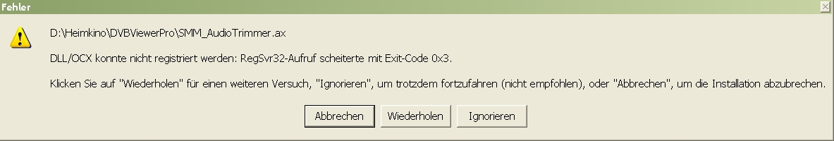 richy1956 Posted April 26, 2018 Posted April 26, 2018 Und zwar scheitert der RegSvr32-Aufruf mit Exit-Code 0x3 beim _Registrieren der Filter-Dateien. Quote
