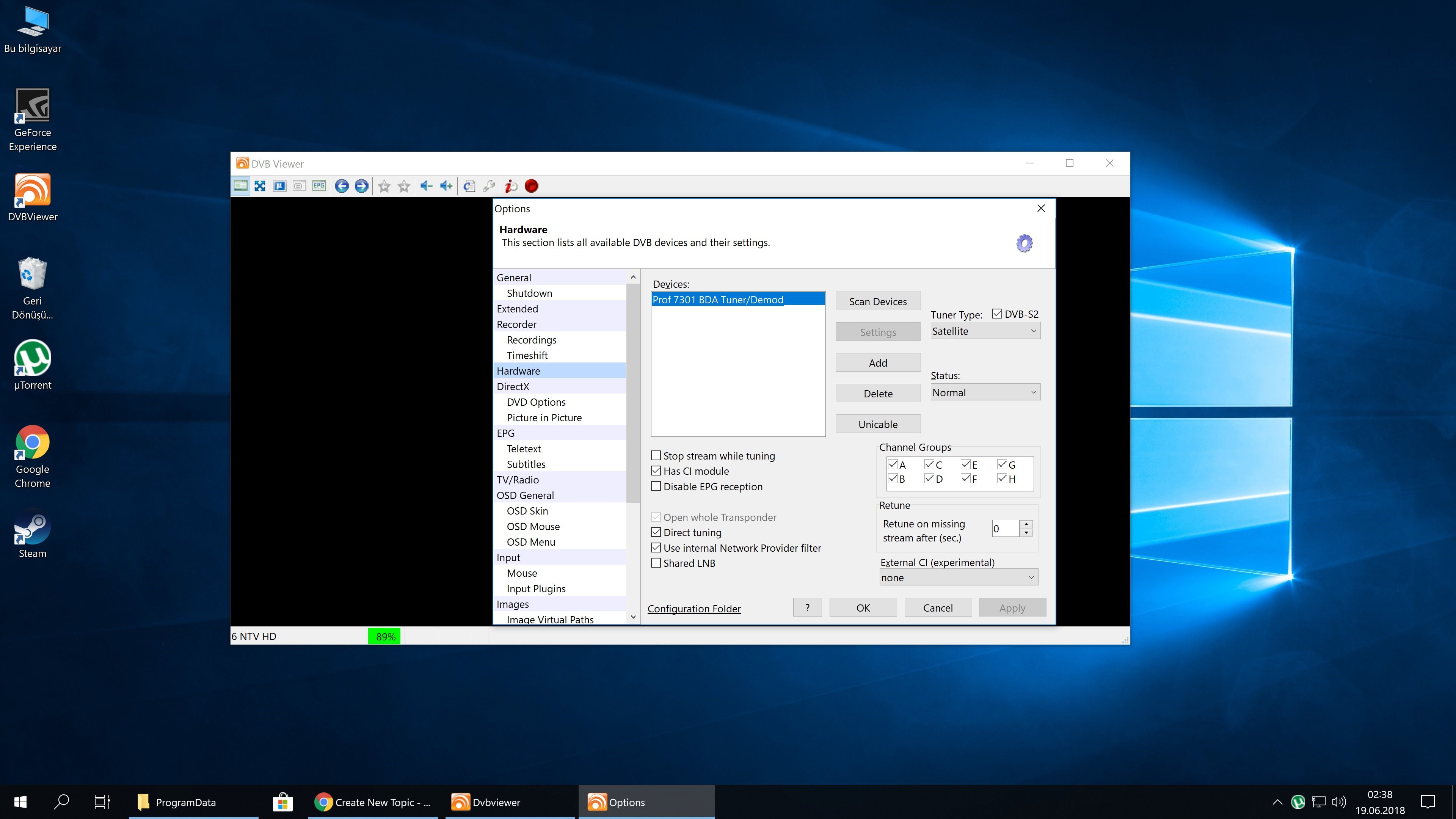 tahir40 Posted June 18, 2018 Posted June 18, 2018 (edited) I installed the tv capture card driver, direct 9x and codecs. I can see the %89 signal. I even copied the DVBViewer program folder and CMUV folder that i have as back up but cant have video or audio since I reinstalled windows 10 pro Edited June 18, 2018 by tahir40 Quote