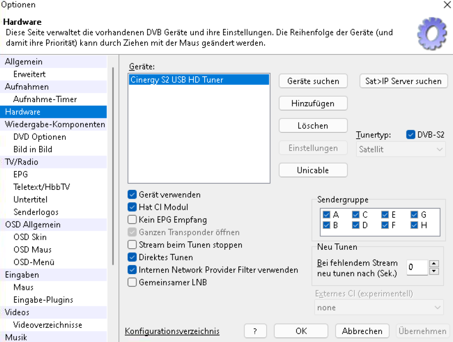 Michael P. Posted May 27, 2020 Posted May 27, 2020 Hallo, nachdem meine Strategie nach einer Neuinstallation von Windows nicht mehr funktioniert hat, bin ich entnervt auf TBS-5520-SE umgestiegen. Da läuft alles auf Anhieb und man braucht kein Netzteil, da der Strom vom USB Port ausreicht. Der Tuner kann auch andere DVB-Formate, ich verwende bisher aber nur DVB-S. Sollte mal der SAT-Empfang wegen schlechtem Wetter nicht funktionieren, werde ich mal DVB-T2 ausprobieren. Quote