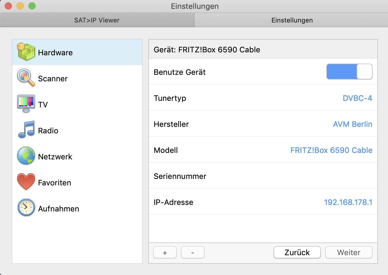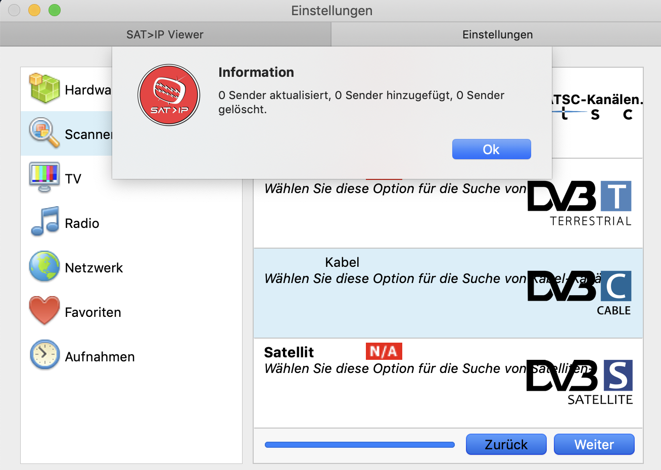 Markus H Posted March 15, 2019 Posted March 15, 2019 Hallo Zusammen, ich schaffe es leider nicht den Sat>IP Viewer zusammen mit meiner Fritz!Box 6590 Cable zum laufen zu bringen. Ich habe das Programm auf meinem iMac installiert und die FritzBox wird auch erkannt Mein Anbieter ist Vodafone (Kabel Deutschland) und die Fritz!Box findet in den eigenen Einstellungen auch diverse frei Fernsehkanäle (SD und HD). Leider finde ich mit dem Scanner keinen einzigen davon (Transponder * Kabel Deutschland ... und diverse andere Versuche) Meiner Einschätzung nach sollte das irgendwie funktionieren, nur leider nicht mit meinem Wissenstand. Was ich bräuchte ist eine möglichst Laienkompatible Anleitung welche Einstellungen ich im Programm, aber auch am Router vornehmen muss! Vielen Dank vorab Quote