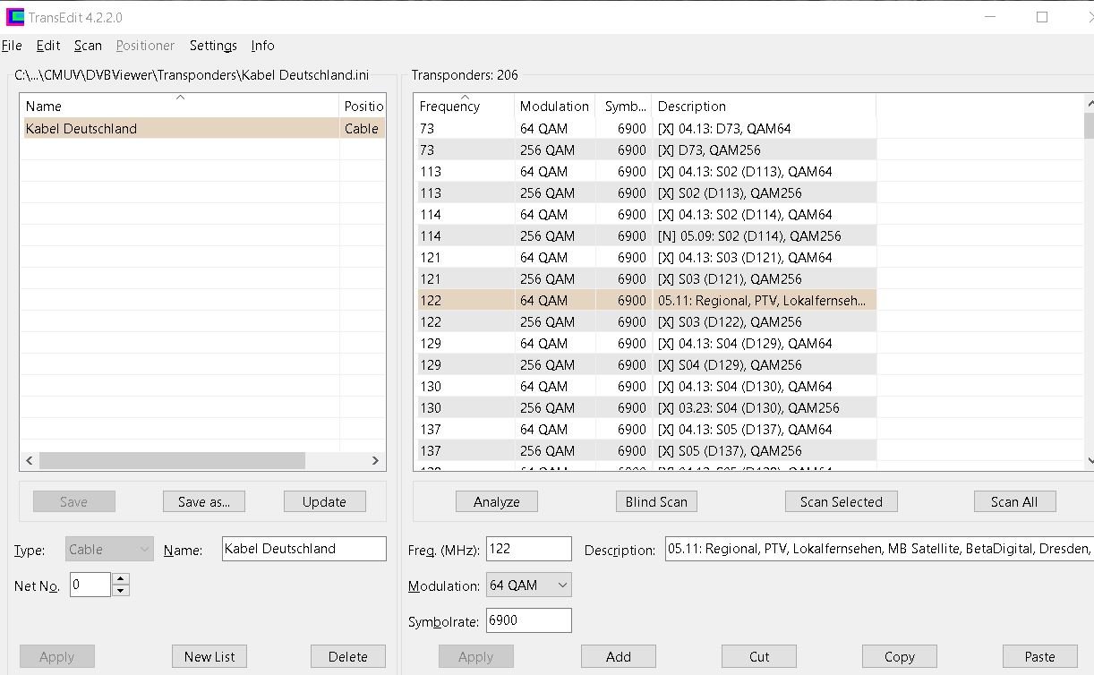 Griga Posted May 12, 2019 Posted May 12, 2019 vor 20 Stunden schrieb Gerd Leistner: Transedit zeigt RTL und SAT1, aber RTL nur im Sendersuchlauf an. Es ist unklar, was dieser Satz meint. Aus dem Screenshot ist ersichtlich, dass RTL und Sat.1 bei den TransEdit-Suchlaufergebnissen erscheint. RTL wird als bereits in der DVBViewer-Senderliste vorhanden markiert. Sat.1 nicht, also scheint der Sender in der DVBViewer-Senderliste zu fehlen. Es kann auch sein, dass Sat.1 in der DVBViewer-Senderliste mit falschen (veralteten) Daten steht. Ich würde versuchen, ihn mit der Suchfunktion des Senderlisten-Editors ausfindig zu machen. Übrigens: https://www.dvbviewer.tv/forum/topic/62073-transponderliste-kabeldeutschland/?do=findComment&comment=478956 Eine so erzeugte Transponderliste ist wahrscheinlich besser geeignet als die von dir verwendete. Quote