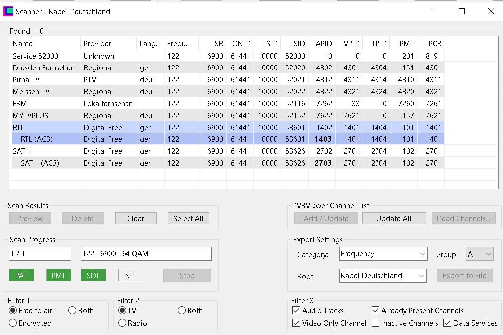 Gerd Leistner Posted May 11, 2019 Posted May 11, 2019 Transedit zeigt RTL und SAT1, aber RTL nur im Sendersuchlauf an. Klicke ich SAT1 (122/64QAM/6900) im Suchlauffenster mit "preview" an, öffnet DVBViewer den SAT1-Kanal mit Bild und Ton. Im Sendersuchlauf im DVBViewer wird aber SAT1 nicht angezeigt. RTL vergleichsweise problemlos. Woran kann es liegen? Danke Quote