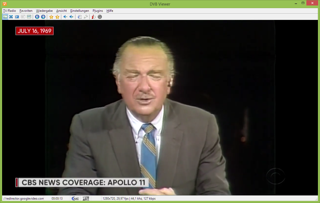hackbart Posted July 17, 2019 Posted July 17, 2019 The landing on the moon is now 50 years ago and CBS uploaded a video of the live transmission. For those of you, like me, who are too young to remember, or those who forgot and/or saw this only in black and white. You might check this out: https://www.youtube.com/watch?v=zYnF31el-ik&t=12s It also works inside the DVBViewer if you don't want to play it in youtube. 1 Quote