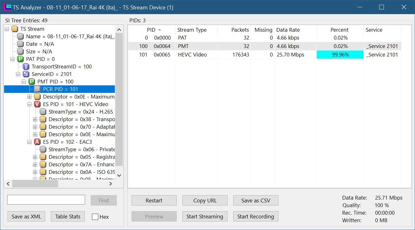 Griga Posted August 12, 2019 Posted August 12, 2019 It looks ok. But that is SI (Service Information) data read by scanners. For playback it is not so important. Does the audio stream with PID 102 appear in the PID List on the right side of the Analyzer window? Is it displayed in Red or Black? Quote