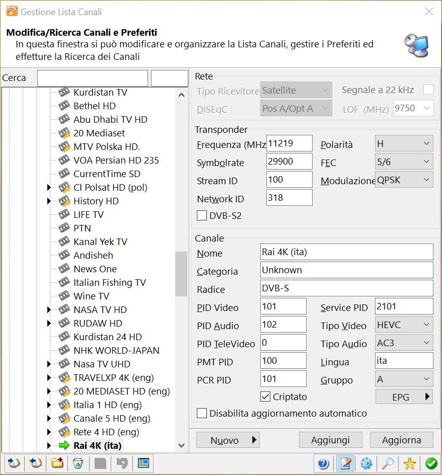 Marco Massari Posted August 12, 2019 Author Posted August 12, 2019 On other forums it seems that even with normal decoders you have problems, I'll quote you a user: "In my opinion the problem encountered on some TVs and decoders is that Rai 4K is transmitting with the audio identifier (private data) instead of the usual (AC3) or (MPEG) The audio tracks are still present and working. Some TVs or decoders bypass the problem so the audio is ok, others do not detect any audio track " Quote