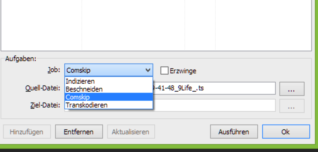 stefan.m Posted April 27, 2021 Posted April 27, 2021 Am 24.10.2019 um 14:08 schrieb Webturtle: Weder mit "Execute" noch mit "OK" ist etwas passiert. Halt das ist nicht ganz korrekt, denn bei Execute verschwanden die Einträge und die Liste war wieder leer und bei OK wurde das Fenster geschlossen. Hallo zusammen, ich weiß der Thread ist alt. Ich hatte gerade denselben Effekt. Der Transcode-Befehl braucht die passende Comskip-Datei (.edl) im selben Ordner. Warum ist das so? Machen trimming und transcode dasselbe oder ist das ein Bug? Ich hoffe die Info hilft jemand anderem weiter. Mit freundlichen Grüßen Quote