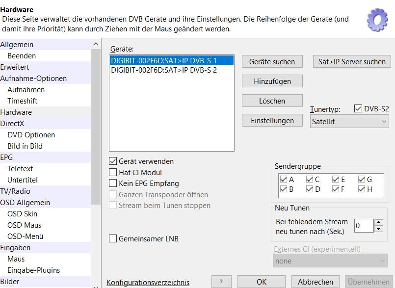 mark2019 Posted January 23, 2020 Posted January 23, 2020 (edited) Wenn ich dich richtig verstehe, hast Du den Suchlauf im Web-Interface des Sat-IP Servers gestartet. Dies ist nicht erforderlich. Du must den Suchlauf im Client (PC mit DVBViewer, TV, …) starten. Im DVBViewer ist schon eine gute Senderliste dabei. Wenn Du von 4 Ports nur einen beschaltet hast, dann sollte im DVBViewer unter Hardware nur ein Port bleiben. Die 3 anderen solltest Du löschen. Edited January 23, 2020 by mark2019 Quote