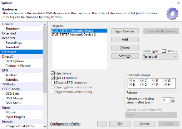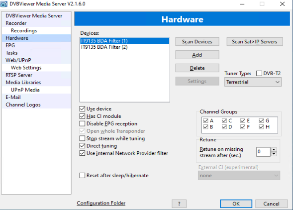 John Tikis Posted February 15, 2020 Posted February 15, 2020 I have been using the DVBViewer/DVB Media Server for some years now and I am a satisfied customer to this excellent family of products. I am using two AverMedia Volar 2 HD USB sticks for HD TV reception within a Windows 10 box and everything was running fine. After updating to the latest versions (6.1.6.0/2.1.6), I can only use one of the two tuners within DVBViewer! If I schedule, however, two simultaneous recordings belonging to two different DVB transport streams (forcing both USB tuners to function simultaneously), I can record any content just fine! Therefore, on a hardware/driver level, the USB tuners work out fine. It seems that the interoperability between the two products has been somewhat lost or disrupted. I attach the hardware settings of both DVBViewer and DVB Media Server, along with the error message during DVBViewer startup. Also, please note that any firewall has been disabled. Any help? :) Quote