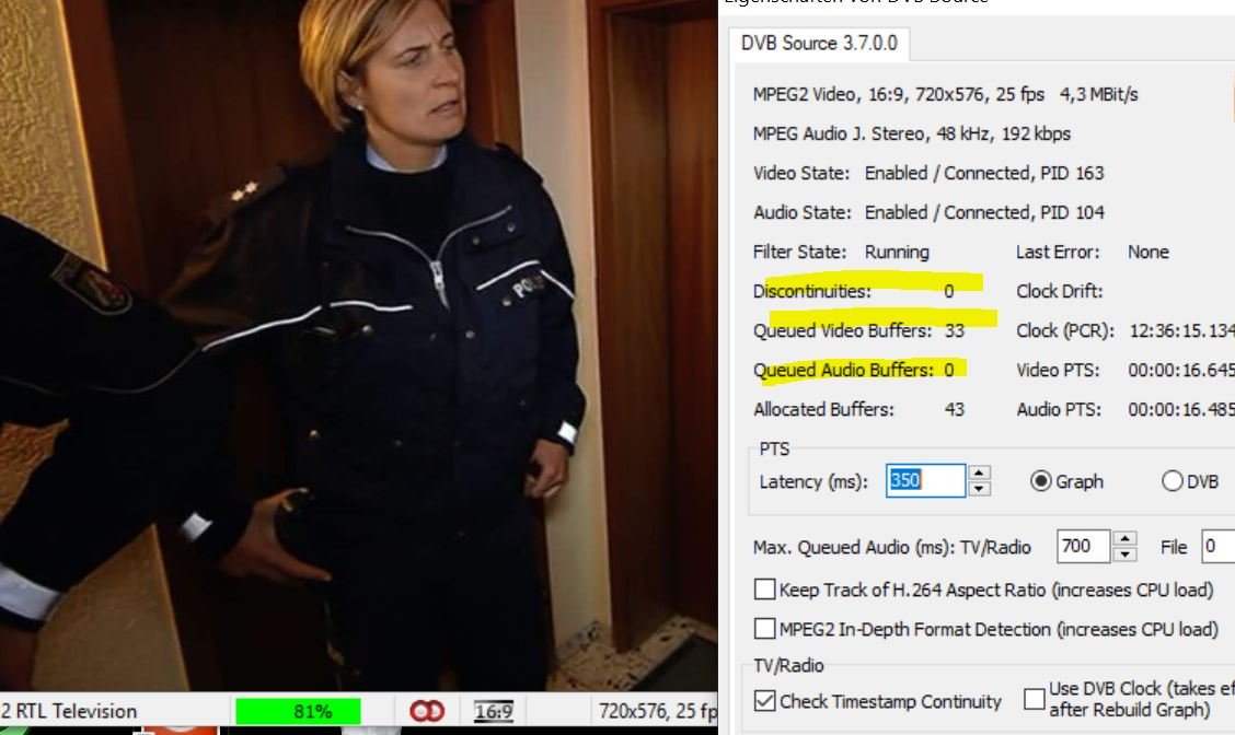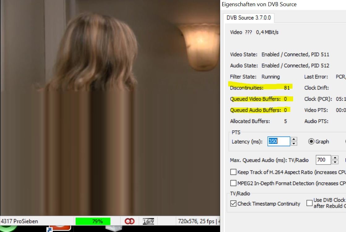Darth2010 Posted March 4, 2020 Posted March 4, 2020 Hallo Community, ich habe seit ein paar Tagen das Problem, dass bei einigen Sendern (z.B. Pro7 oder Disney Channel) der Bild und der Ton "abreißen". Gerade der Disney Channel sorgt intern für große Probleme bei den Kleinen, da ich dort einge Sendungen per Recording Service aufnehme. Hier zwei Screenshots: Andere Sender wie ARD, ZDF oder RTL laufen wie gewohnt. Kennt einer dieses Problem oder hat Tips wie ich das Problem beseitigen kann? DVBViewer habe ich bereits Neuinstalliert, ohne Besserung. Hier meine Config: OS: Windows 10x64 OS Build: 1809-17763 Memory: 4 GB CPU: Intel(R) Core(TM) i3-4330 CPU @ 3.50GHz Videocard: integrated TV-Tuner: TeVii S471 DVB-S2 Support.zip hängt an. Danke und Gruß Darth support.zip Quote
