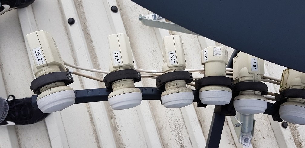 SatWaveDude Posted July 11, 2020 Author Posted July 11, 2020 I use a 4 port Diseqc switch with a WaveFrontier T90 dish: This is the dish but I use only 4 LNB's on 13, 19.2, 23.5 ,28.2° with dual output: Quote