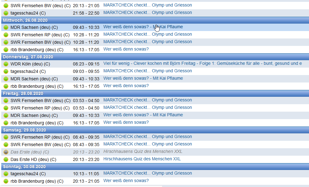 Griga Posted August 4, 2020 Posted August 4, 2020 7 hours ago, TGW-RE said: Ich habe mir das komplett durchgelesen und glaube auch alles verstanden zu haben. Vermutlich nicht. Vor allem fehlt in deinen Posts eine klare Unterscheidung der Begriffe "Suchvorgabe" und "Timer". Das purzelt munter durcheinander. 7 hours ago, TGW-RE said: Warum gekomme ich diesen Marktcheck immer wieder, Weil du eine Suchvorgabe gespeichert hast, die die Sendungen abdeckt, auf welche Weise auch immer. Wie du feststellen kannst, wo die Timer herkommen, habe ich bereits gepostet, aber du bist nicht darauf eingegangen: 23 hours ago, Griga said: Falls du immer noch rätselst, wo Timer herkommen, hilft dieser Hinweis. Quote
