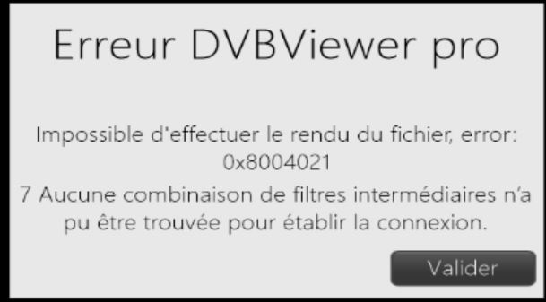 modjo Posted November 7, 2020 Posted November 7, 2020 Bonjour Messieurs, j'ai un soucis avec DVBViewer PRO. Lorsque je lis une liste m3u toutes les télévisions fonctionnent sans problème mais les fichiers vidéos dela liste m3u ne sont pas lus. Il est écrit: pas de lecture et l'ecran est noir avec un message d'erreur: Impossible de modifier le rendu de fichier, erreure: 0x8004021 Aucune combinaison de filtres intermédiaires n'a pu être établie pour établir la connexion Ci joint une image du probleme. Merci Quote