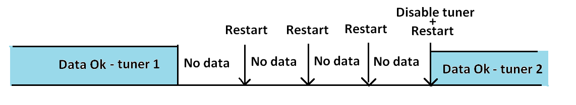 jirim100 Posted May 21, 2022 Posted May 21, 2022 From time to time, some tuners stop working. In this case DMS restart recording after 1 minute (if is enabled option "Restart recording if no data for 60 seconds"). But that's not enough - DMS still tries to work with the same tuner, but without success (this way I haven't recorded many shows during years). Therefore, I suggest adding new option "Disable tuner after x consecutive unsuccessful restarts" to the settings. I currently use 13 tuners, and if one stops working, it will be replaced by another tuner in the list of tuners and when I return to the PC I don't lost any recording and only manually disconnect damaged tuner and connect new tuner. Here is an auxiliary timing diagram (for better understand): A here new settings: Quote