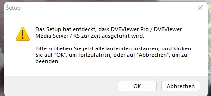 HaraldL Posted December 29, 2022 Posted December 29, 2022 Das heißt daß der DMS Media Server im Hintergrund läuft. Schau rechts unten im System Tray nach dem DMS-Symbol, klicke drauf und wähle "Media Server stoppen" (NICHT Tray-Kontrollprogramm beenden!) dann sollte die Installation durchlaufen. Den Media Server kannst du entweder auf gleichem Weg wieder starten oder, was meist sinnvoll ist, auch das Update für den DMS installieren danach läuft er sowieso wieder. Quote