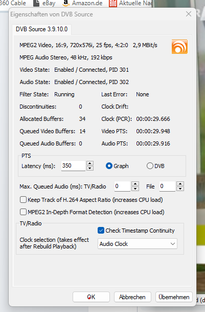 Ba Co Posted November 24, 2023 Author Posted November 24, 2023 Hallo, ich habe DVBViewer nochmal neu installiert, die LAV filter nur 32Bit mit dem installer mit installiert. Debug mode laufen lassen, HD Sender ging, SD Sender nicht wie gehabt. im Anhang die zip Datei. Grüsse ! supporttool.zip Quote