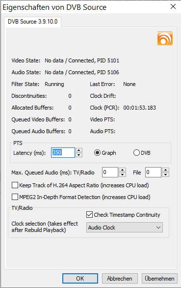 Griga Posted January 5, 2024 Posted January 5, 2024 Der Fall ist schwieriger als gedacht. Ich finde keinen vergleichbaren Fall, in dem sich diese Symptome schon mal gezeigt haben. Im DVBViewer.log aus deiner support.zip sehe ich keinen Hinweis auf einen Fehler. Was da schiefgeht, muss sich außerhalb des DVBViewer-Codes abspielen. vor 19 Stunden schrieb Hagen.Gtrube: Interessant ist, dass der Zeitzähler mitläuft (Bild 3). Der besagt nichts. Du hast in der Statuszeile die Anzeige der Restlaufzeit der aktuellen Sendung (laut EPG) eingestellt. Das funktioniert unabhängig von Empfang und Wiedergabe, wenn EPG-Daten vorhanden sind. Klicke in das Feld, bis dort die Anzeige der Signalstärke erscheint. Das ist normalerweise (bei ausreichendem Empfang) ein grünes Feld mit einer Prozentangabe und hier eher von Interesse. Weitere Fragen zwecks Diagnose: Hat das schon mal irgendwann besser funktioniert? Wie ist die Vorgeschichte? Schalte zunächst die Optionen -> TV/Radio -> Schneller Senderwechsel wieder ein, falls noch ausgeschaltet (und nach Änderungen in den Optionen immer OK oder Übernehmen anklicken, damit es wirksam wird). Stelle nun einen Zustand her, in dem RTL (nach dem Programmstart) einwandfrei wiedergegeben wird. Schalte nun auf Super RTL, RTL 2 oder Vox um. Die genannten Sender liegen alle auf der selben Frequenz wie RTL, d.h. es muss nicht neu getuned werden, um sie zu empfangen. Der DVBViewer braucht sich nur andere Daten aus dem empfangenen Stream herauszusuchen. Funktioniert das? Schalte nun z.B. auf das Erste oder ZDF um. Das beinhaltet einen Frequenzwechsel. Es muss also neu getuned werden. Wie sieht die Signalanzeige in der Statusleiste danach aus? Weiterhin: Rufe in dem Zustand über Einstellungen -> Filter -> DVB Source die Eigenschaftsseite des DVBViewer Filters auf (mehr dazu hier). Was zeigt sie an? Ein Screenshot des Fenster wäre gut. Quote