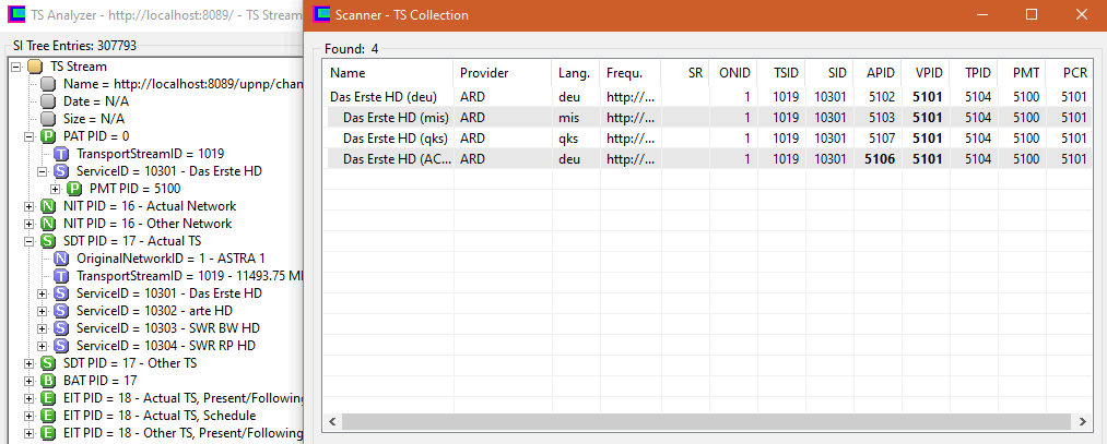 Griga Posted May 27, 2024 Posted May 27, 2024 Ok, now I can reproduce it. It happens because the URL http://129.168.1.19:9999/abertis/pid8001 does not indicate that the stream contains a TS. So TransEdit has to guess. The first guess is "internet radio", which is internally converted to a TS. Since internet radio has no SDT containing an ONID, TransEdit creates a fake ONID. Reading the stream as internet radio fails, of course. The next attempt is reading it as TS, which succeeds, but the fake ONID is already there This does not happen if the Analyzer is running with the same URL, while the URL is is scanned. http:// is replaced by ts:// in the URL. TransEdit understands this as "http stream containing a TS". However, this can't be done with https. the URL ends with .ts, for example .../pids800.1.ts or .../pid8001/xxx.ts. However, the server may not accept it. the URL has a query part that ends with .ts, for example .../pid8001?xxx=.ts. The server will most likely ignore it, if xxx has no special meaning for it. So there are some work-arounds... nevertheless I will try to fix it in the next release. The fake ONID should be reset to 0, if reading a stream as internet radio fails. 1 Quote