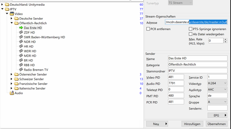 Thomas Späth Posted March 29, 2024 Author Posted March 29, 2024 (edited) Hallo Griga, ich habe in der Zwischenzeit schon mal auf die aktuelle Version des MediaServers gewechselt und gestern abend auch mal die Beta ausprobiert. Das Problem bleibt unabhängig von der verwendeten Version vorhanden, der Log bricht auch mit der Beta-Version nach der folgendenden Zeile ab: 28.03.24 22:35:00.154 TRecording Free TS Stream Device Ich habe gestern mal eine Stream-Aufnahme ohne Telerising getestet und einfach den ARD-Stream aufgezeichnet - Sendereinstellung siehe angehängten Screenshot aus dem Senderlisten-Editor. Telerising war für den Test komplett beendet. Auch mit dem ARD-Stream lässt sich das Problem reproduzieren, auch hier ist der Media Server abgestürzt. Daher würde ich Telerising als Fehlerursache ausschließen. Zu deiner Frage wie oft das Problem auftritt: Gefühlt tritt das Problem erst bei längeren Aufnahmen auf. Aufnahmen von ~30 Minuten Länge klappen meist problemlos, sind die Aufnahmen dann mal zwei bis drei Stunden lang, würde ich schätzen, dass der Absturz in mehr als 50% der IPTV-Aufnahmen auftritt. Bei DVB-C-Aufnahmen sind mir diese Abstürze in den vergangenen Jahren nie passiert. Da die Aufnahmenlänge eine Rolle zu spielen scheint, habe ich mir auch schonmal die Systemauslastung zum Ende der Aufnahme angeschaut, konnte aber auch dabei keine Vollauslastung der CPU oder des Arbeitsspeichers feststellen. Die Aulastung der CPU-Last liegt sowohl während der Aufnahme wie auch im Moment des Absturzes (siehe Screenshot) dauerhaft <10%, der Arbeitsspeicher-Auslastung bei etwa 60%. Und das obwohl fürs Beobachten auch noch der Teamviewer aktiv war. Viele Grüße Thomas Edited March 29, 2024 by Thomas Späth Quote