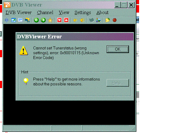 power_user Posted March 20, 2005 Posted March 20, 2005 Today i bought and set a avb card and after installation of all stuff i got the following error: Can not set Tunerstatus (wrong settings), error 0x90010115, Unkown error code. I already searched the forum for a similar topic but I faild to fix it myself - please help me out. Thanks Quote