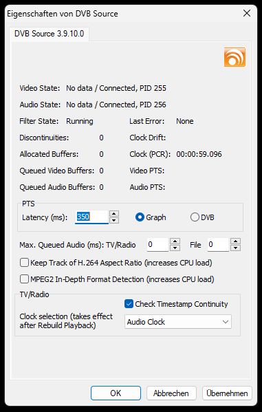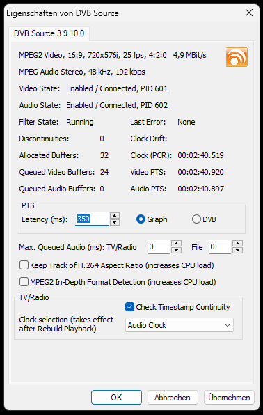 Griga Posted May 11, 2024 Posted May 11, 2024 vor 22 Minuten schrieb Roland S.: dann war das Bild wieder weg Aber der Ton ist noch da? Oder ist alles weg? Was auch bei der Diagnose helfen könnte: Ein Screenshot der Eigenschaftsseite des DVBViewer Filters in dem Zustand. Mehr dazu hier. Quote
