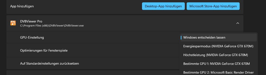 Uwe-HH Posted May 22 Posted May 22 Hallo Forum, um mein aktuelles Problem zu schildern, muss ich leider ein wenig ausholen: Da ich mir vorerst keinen neuen Computer wegen Windows 11 kaufen möchte, habe ich testweise meinen alten Laptop (siehe zu den Komponenten bitte die angehängten Bilder) mit Flyby11 problemlos mit Windows 11, per Neuinstallation, installieren und einrichten können. Natürlich wollte ich dann auch meine mir bekannten Programme weiterhin nutzen, dazu gehört halt auch der DVBViewer. Die Installation mit den Standarteinstellungen und der dann erfolgte Sendersuchlauf funktionierte ohne Probleme, die Hardware- und alle Sender wurden korrekt gefunden. Mein Problem stellt sich nun wie folgt dar: Die Wiedergabe von Fernsehprogrammen via Fritz!Box 6660 Cable ergibt ruckelnde Bilder und wenn ich wie unter dem Bild "Auswahl GPU" unter "System>Bildschirm>Grafik" eine andere Einstellung vornehme, ist zwar die Bildqualität besser, jedoch fehlen mir dann die von mir benötigten Untertitel. Die LAVFilters-0.79.2 habe ich ebenfalls mit den Standarteinstellungen installiert und wenn ich ehrlich sein soll, erschlagen mich hier die vielen Einstellmöglichkeiten, von denen ich nicht die geringste Ahnung habe, was eventuelle Änderungen bewirken. Merkwürdigerweise funktioniert die Wiedergabe von Fernsehprogrammen per VLC-Player mit den ebenfalls, per Fritz!Box 6660 Cable generierten *.m3u Listen ohne Probleme. Deshalb vermute ich nun, dass es vielleicht nur einer bestimmten Einstellung in den tiefen des DVBViewer bedarf, um dieses mir liebgewonnene Programm auf meiner abenteuerlichen Konfiguration vorerst weiter, in der gewohnten Qualität, nutzen zu können. Falls es weiterer Infos bedarf, bitte ich hier um Nachricht. Gruß Uwe-HH support.zip Quote