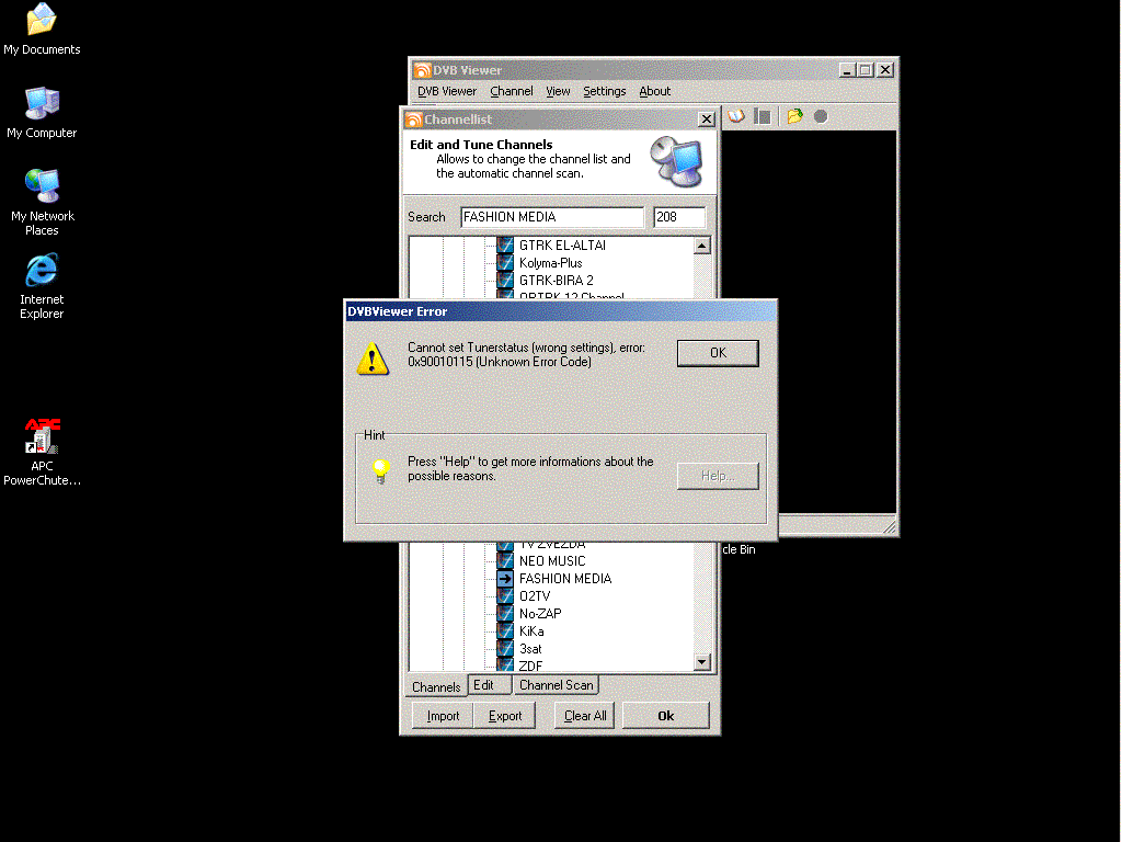 certhas Posted June 8, 2005 Posted June 8, 2005 Cannot set tuner status (wrong settings) error 0x90010115 (unknown error code) I get this error when i try to switch the channels. (im using skystar2) Is there anything else beside the normal installation i have to do to get DVBViewer to work ? Can anyone help me ? certhas Quote