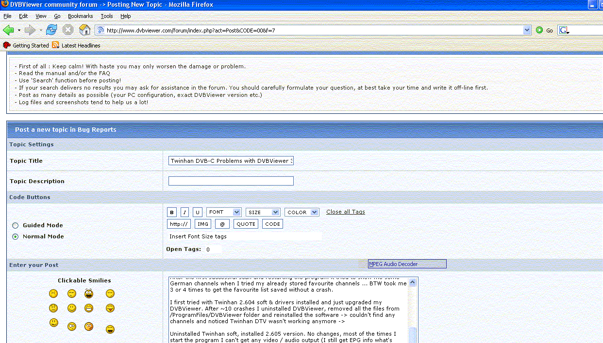 Roope Posted July 14, 2005 Posted July 14, 2005 Good news: The channel scan finally works with 3.1.2.(After I created a transporter file of my own, the scan input still neglect if I input my own frequencys & freq. steps) (So two months after I bought the software I had the chance to test it). This is also only software tested this far that seems to work with Finnish TV DVB subtitles ... and possibly record them as well using TSRecorder plugin. Bad news: Most of the times the program refuses to show video / audio, I'll have to restart DVBViever several times and / or try to view channels first with Twinhan software. After the first successful scan and restarting the program it tried to show me some German channels when I tried my already stored favourite channels ... BTW took me 3 or 4 times to get the favourite list saved without a crash. I first tried with Twinhan 2.604 soft & drivers installed and just upgraded my DVBViewer. After ~10 crashes I uninstalled DVBViewer, removed all the files from /ProgramFiles/DVBViewer folder and reinstalled the software -> couldn't find any channels and noticed Twinhan DTV wasn't working anymore -> Uninstalled Twinhan soft, installed 2.605 version. No changes, most of the times I start the program I can't get any video / audio output (I still get EPG info what's playing right now)... I have played quite a lot with different options of mpeg decoder settings etc. I tried to record something with TSPlugin after I finally got something playing (several hours of attempt, that has to be done every time), but the probram chrashed after about 5 minutes of recording. There seems to be different success stories about DVBViewer & Twinhan cards, but I don't think my card will ever work with the software I bought for it BTW: After one of the crashes I've experienced today there's a "check box" from the filters menu, MPEG Audio decoder, hanging on my screen, no matter what I do (haven't rebooted yet, as I have a lot processes running. Quote